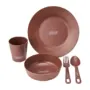 ชุดจาน ชาม ถ้วย และช้อนซ้อม สำหรับ 1 คน ผลิตด้วยวัสดุธรรมชาติมากกว่า 50% ทำความสะอาดง่าย ทนความร้อนได้ถึง 140 องศาเซลเซียส